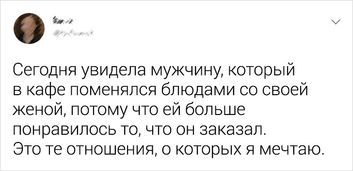 Прокинулася, а в будинку немає чоловіка і дитини! Виявляється, чоловік з ранку раніше зібрав доньку на прогулянку (в 9 ранку, щоб ви розуміли, наскільки я вдало вийшла заміж), а потім вони ще й заїхали за продуктами. Чоловік привіз купу їжі зі словами: "Не став тебе будити, щоб ти виспалася". © MrsGadzhieva / Twitter