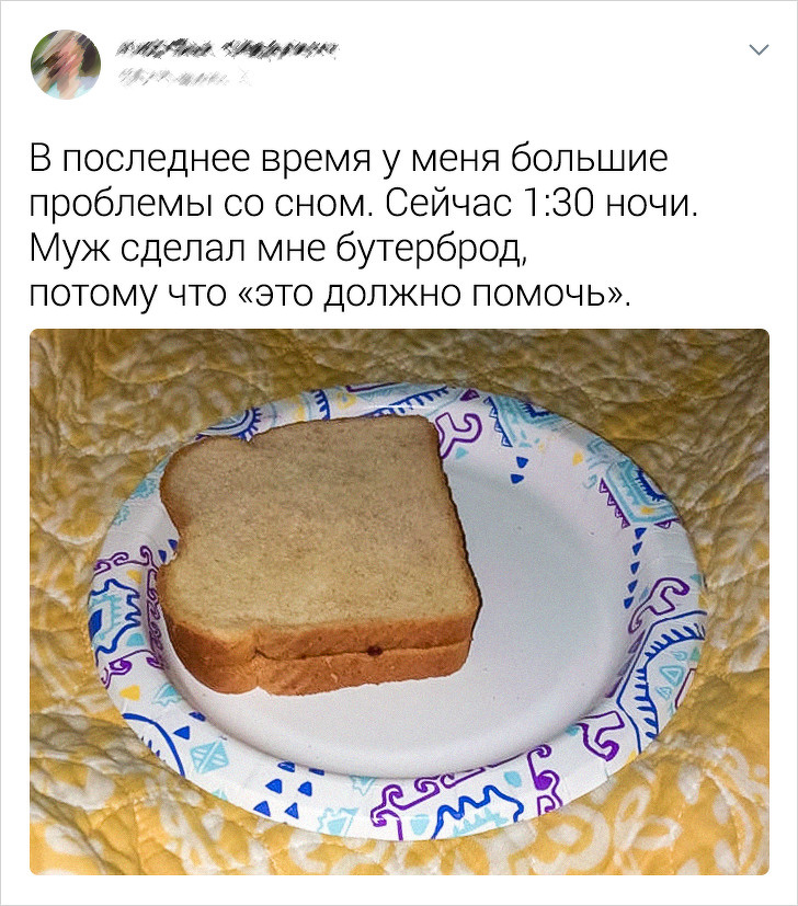 Дитина захворіла, і я всю ніч не зімкнула очей. Чоловіка не чіпала, бо рано вранці йому треба було на роботу. Коли він повернувся увечері, відправив мене спати, а сам заходився готувати вечерю. Такі дрібниці дійсно допомагають. © YoRoeFlo / Twitter