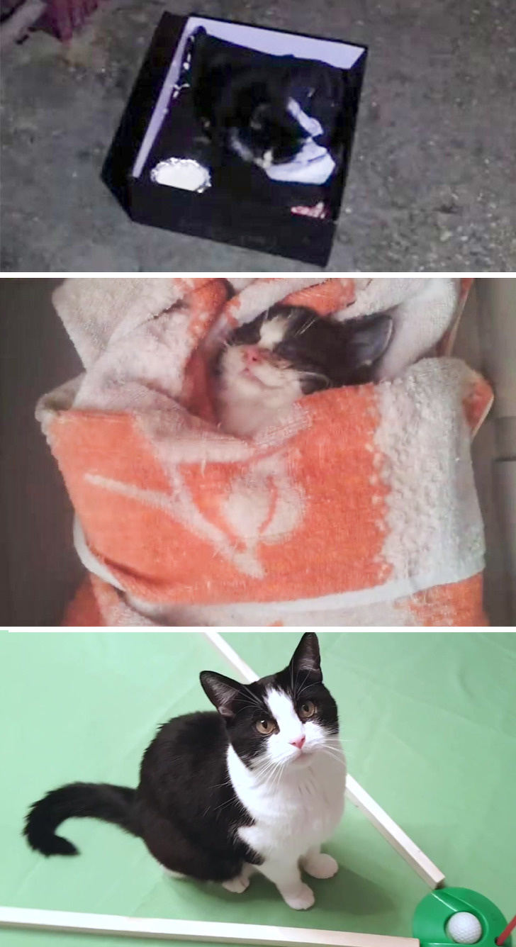 12. В під'їзді житлового будинку підібрали котеня в коробці. На 5-й день лікування вихованець перебував у критичному стані, але на 7-й пішов на поправку. Пухнастого улюбленця назвали Пусик. Тепер він знаменитість Білорусі і у нього є канал на YouTube