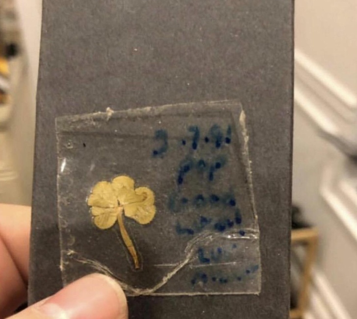 3. «Мені було 8, коли я знайшов 4-листный конюшина і подарував батьку. Він помер, і я знайшов цей пакетик в його гаманці, коли розбирав речі. 20 років тому він все ще зберігав його»