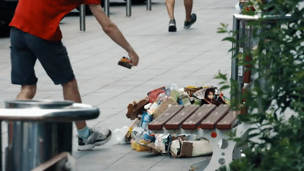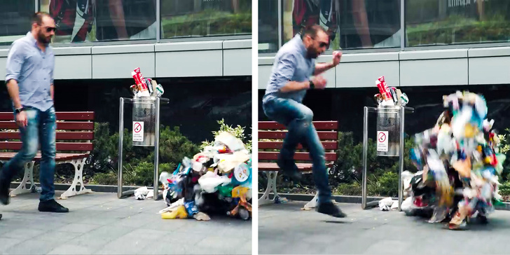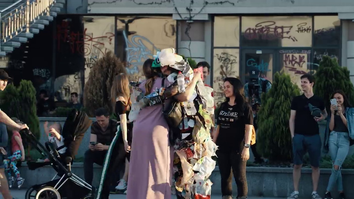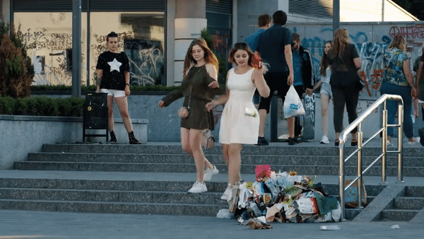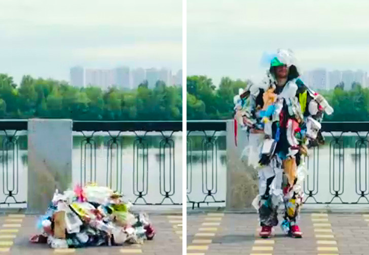 У Києві з'явився супергерой зі сміття: якщо люди викидали щось повз урни, купа мотлоху «оживала» і бігла за ними