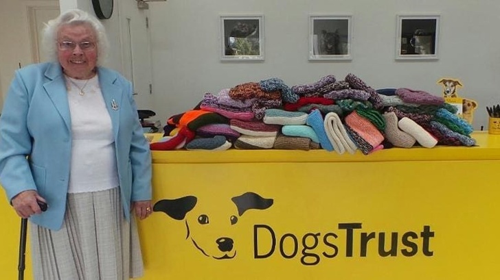 14. Ця 89-річна бабуся зв'язала більше 450 ковдр для собачих притулків