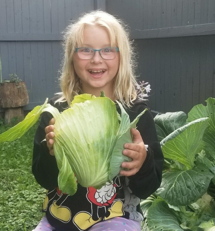 11. «Моя дочка виростила своє перше рослина — капусту»