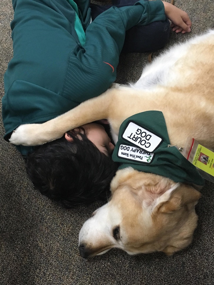10. Дорі спеціально навчена супроводжувати дітей у залі суду, щоб заспокоїти їх і полегшити процес