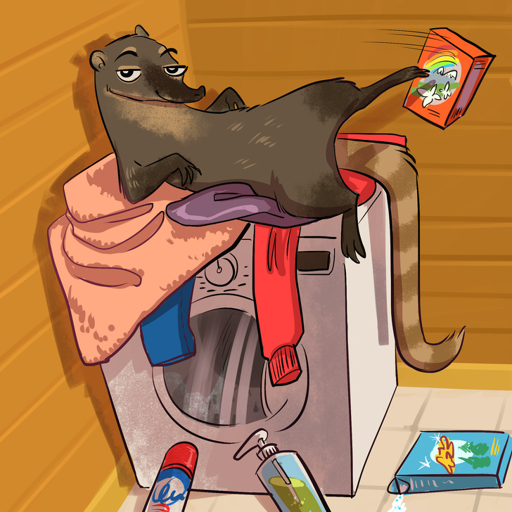 Коли ж звір не міг дотягнутися до речей, він вилазив на пральну машинку і діставав одяг вже звідти.