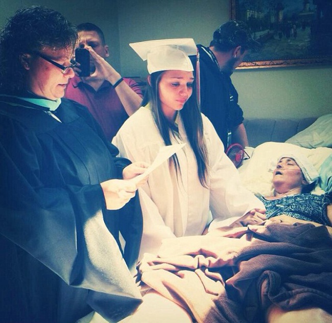 Дівчина отримує диплом про вищу освіту перед своєю невиліковно хворою матір'ю