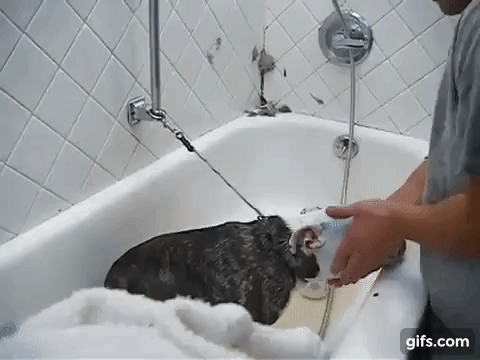 Волонтери Rescue Ink купають собаку по імені Лола.