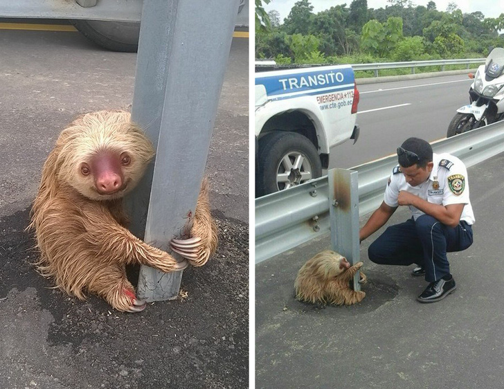Поліцейський помітив лінивця, який опинився на шосе. Його спочатку відвезли до ветеринара, а потім повернули у звичне середовище перебування