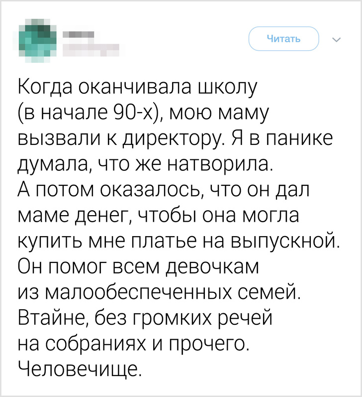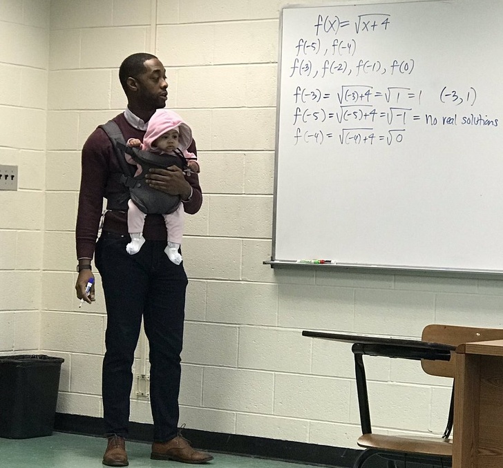 «Сьогодні один із студентів прийшов зі своєю дитиною, так як його не було з ким залишити. Наш професор сказав: „Давайте я понянчу його, щоб вам було зручно вести конспект“»