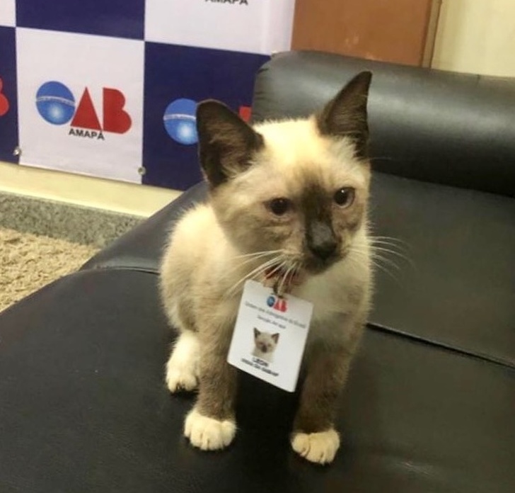 В офіс Бразильської асоціації адвокатів забрів кошеня, рятуючись від дощу. Його не тільки прихистили і нагодували, але і прийняли в штат». Малюкові дали ім'я Леон