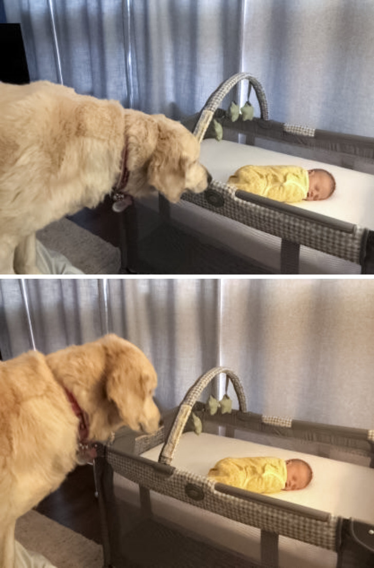 «У нас з'явився первісток, і з тих пір наша собака Люсі на сторожі. Він заплакав, і вона негайно пішла переконатися в тому, що все в порядку, і залишалася там, доки він не заснув»