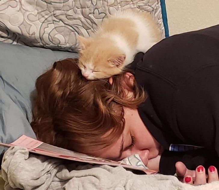 «Моя змучена донька заснула. Її кошеня вирішив приєднатися до неї»