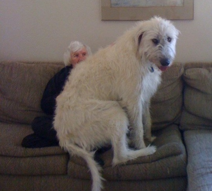 «Наш ірландський вовкодав сидить на колінах у бабусі. Він поняття не має, наскільки він великий»