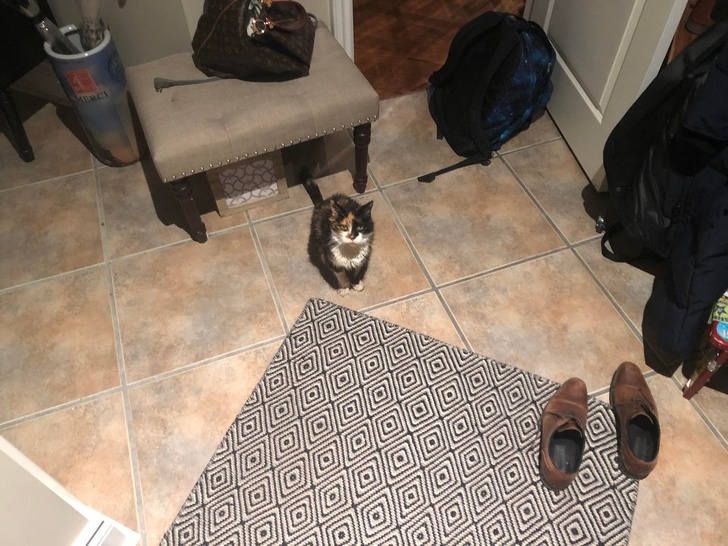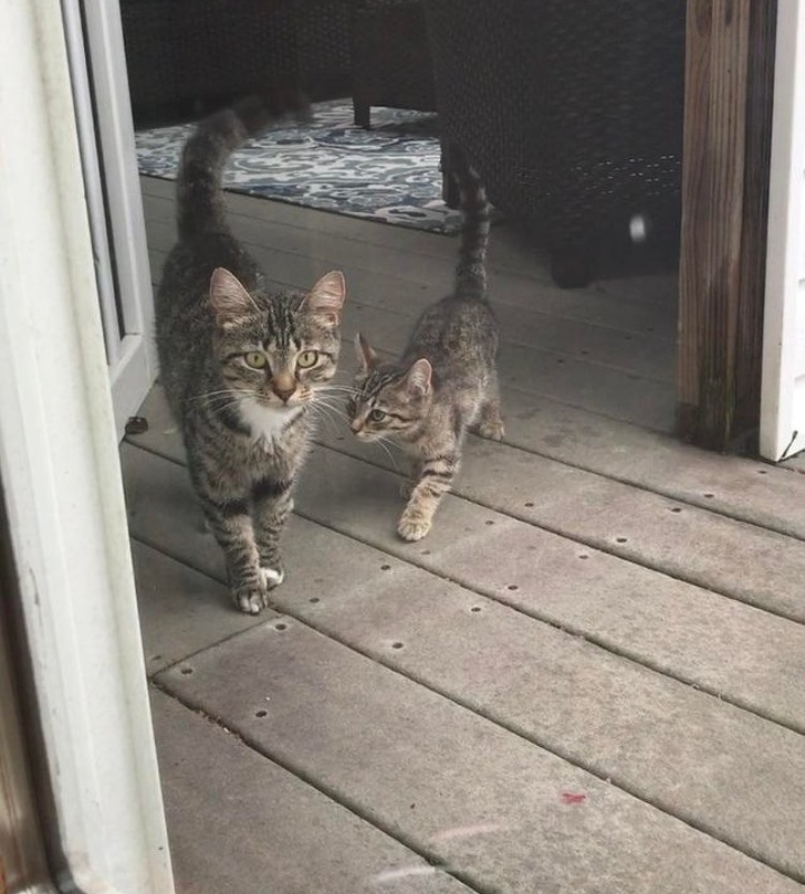 «Годував цю бездомну кішку трохи менше року. Думав, що вона товстішає, а виявилося, що у неї з'явилися 3 кошеня. Вона привела їх до мене»