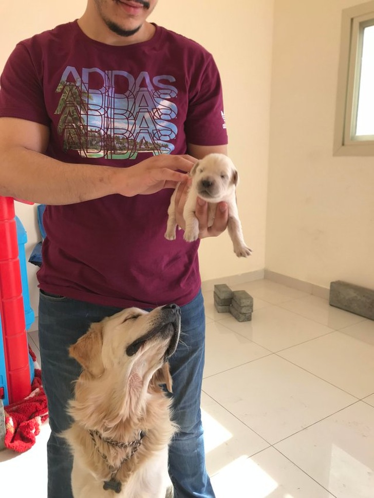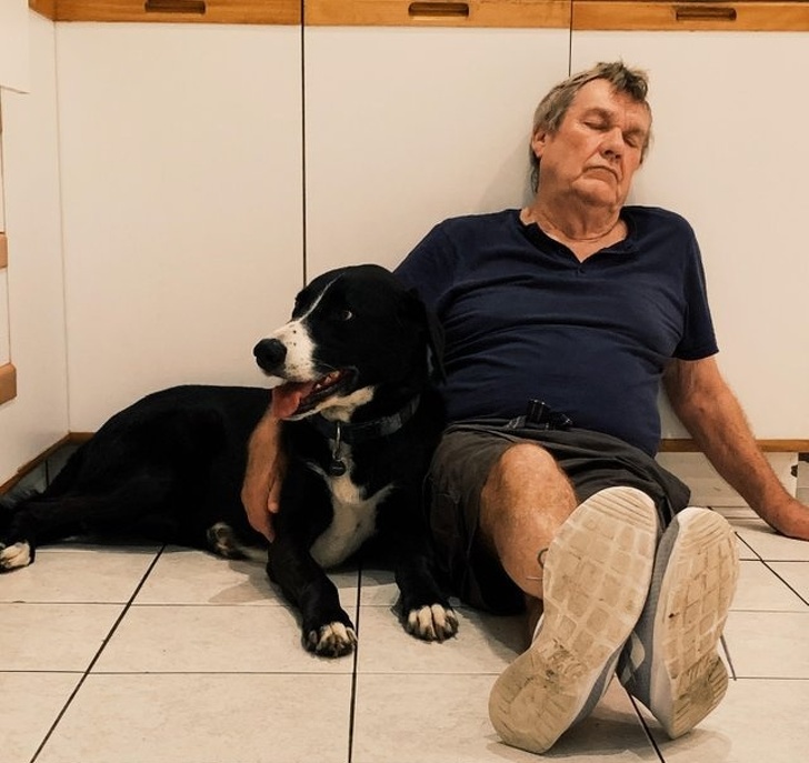 «Наша собака була налякана феєрверками у переддень Нового року і відмовилася йти з кухні. Знайшов мого тата сидять ось так на підлозі»