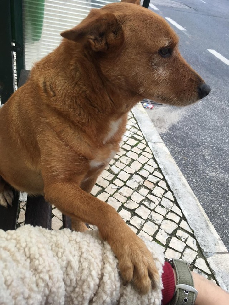 «У мене був поганий день. Ця собака підійшла до зупинки і сіла поруч зі мною на лавці. Тепер у мене хороший день»