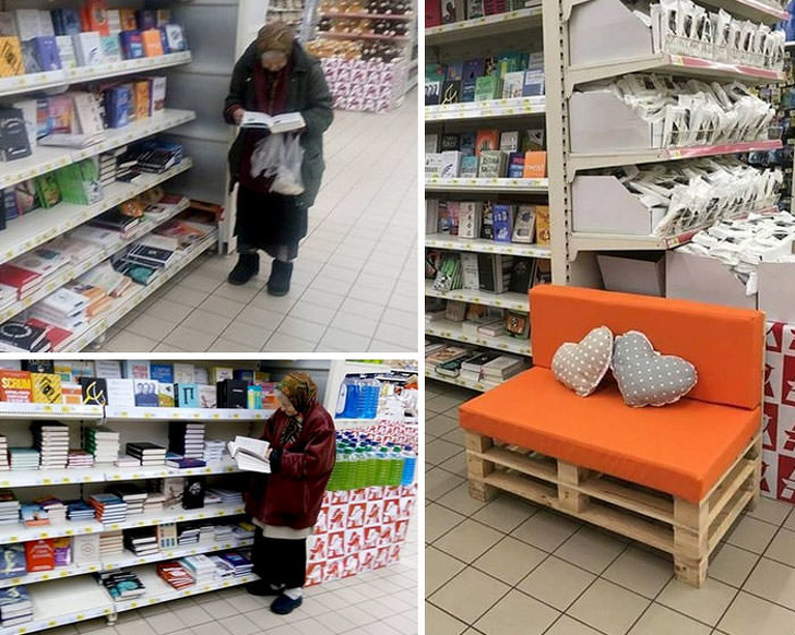21. Бабуся щодня приходить в магазин, щоб почитати. Тому керуючий вирішив зробити для неї лавку