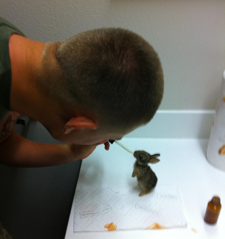 18. Піхотинець прихистив 4 кроленят, яких знайшов у норі поруч з мертвої мамою. Він щодня годував їх із піпетки протягом 2 місяців
