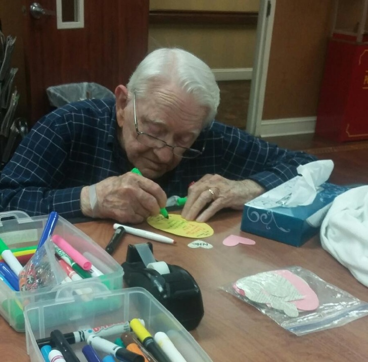 8. «Мій 92-річний дідусь малює вітальну листівку для моєї 93-річної бабусі»