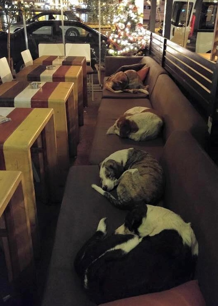 10. Кожну ніч кав'ярня в Греції пускає бездомних собак погрітися, щоб ті не замерзли на вулиці