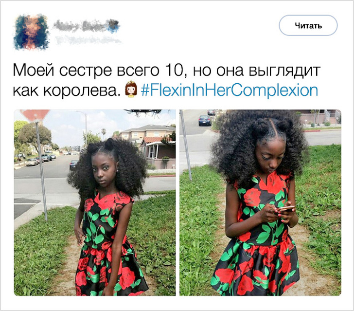 Старша сестра Керіс — 23-річна Тейлор — дуже хотіла допомогти дитині. Вона вирішила навчити сестричку любити себе. Тому сфотографувала дівчинку і опублікувала її фотографію у своєму твіттері. До знімків Тейлор додала хештег — ті слова, які часто повторювала їх бабуся: #FlexinInHerComplexion («її сила в кольорі її особи»).