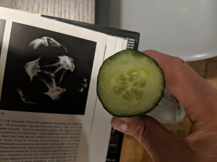 8. Малюнок в огірку виглядає точнісінько як звукові хвилі в рідинах