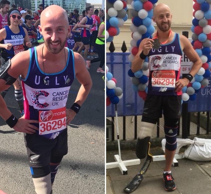«Це мій кузен Гарет. У нього 15 ракових пухлин і ампутована нога. Минулого тижня він завершив Лондонський марафон»