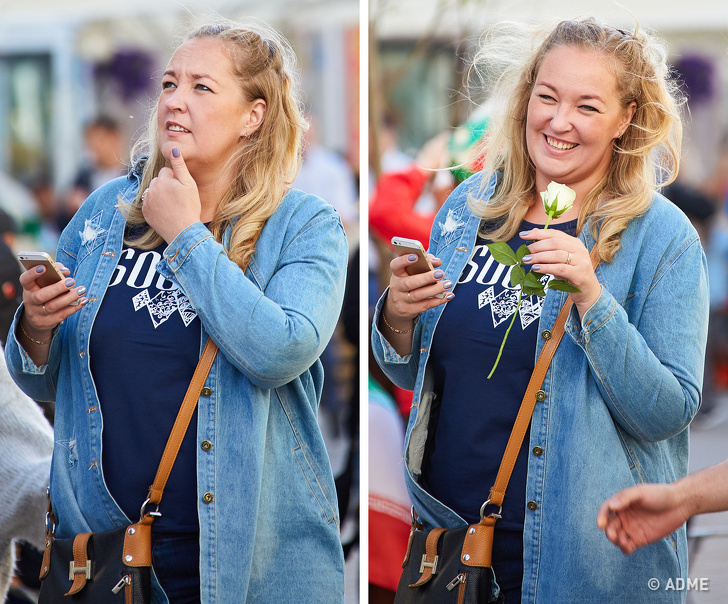 Кажуть, що для гарного настрою потрібно не так вже й багато: досить доброго слова, компліменту, посмішки та й просто уваги. Ми вирішили провести невеличкий соціальний експеримент і перевірити, як дівчата та жінки на вулиці будуть реагувати на щирий комплімент від незнайомого хлопця, наприклад, у вигляді квітки. Чи вийде у нас подарувати їм гарний настрій або вони зовсім пройдуть повз?