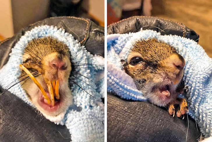 Жінка помітила білку з дуже довгими зубами, які загрожували життю звірка. Вона змогла підрізати різці, і тепер білочка може знову нормально їсти