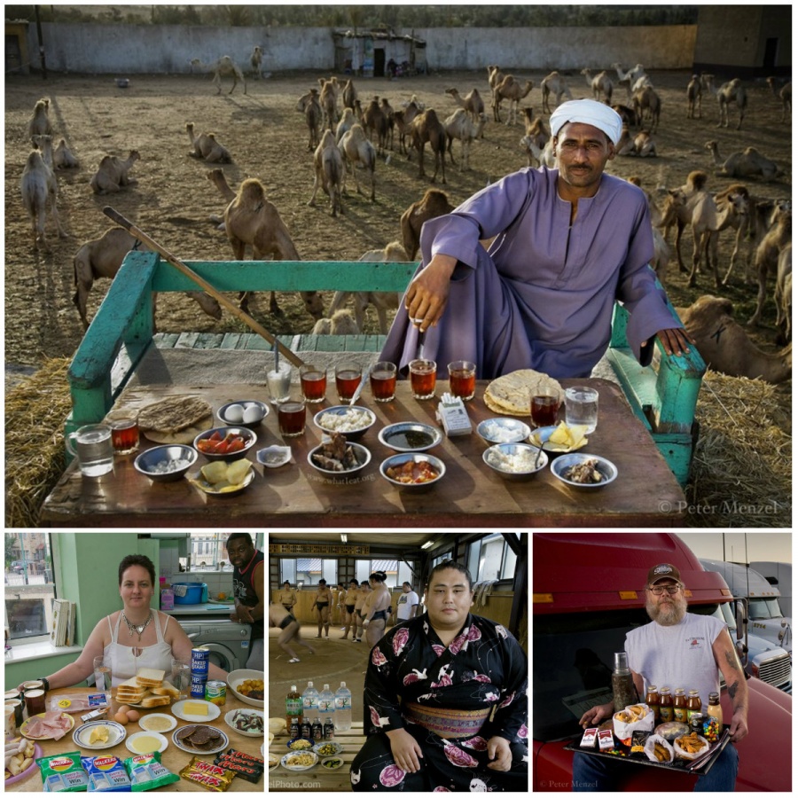 Американський фотограф Пітер Мензель подорожує по світу і вивчає, що їдять самі звичайні люди по всьому світу — від йога до фотомоделі. Відбиток на раціон жителів різних країн накладають культура, звичаї і, звичайно ж, рівень життя. Чого вартий хоча б різниця в калорійності їжі: від 800 ккал до 12,3 тис. ккал в день.