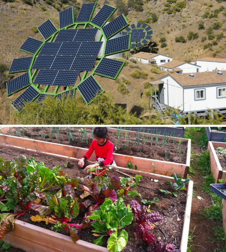На фермі Urban Homestead у Каліфорнії на 4 сотках сім'ї вдається вирощувати овочі і для себе, і для місцевих ресторанів. На їх ділянці росте 400 сортів овочів, фруктів і навіть їстівні квіти, а в рік вони збирають 3 тонни врожаю. А ще тут є качки, кури, кози і бджолині вулики, тому на столі завжди свіжі яйця, молоко і мед.