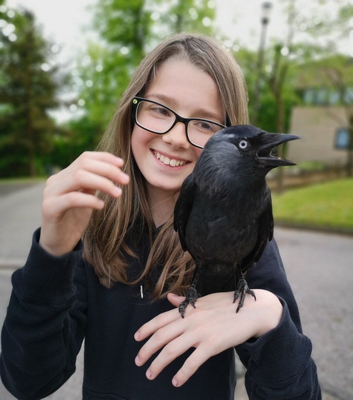 4. «Донька врятувала галку, яку атакували сороки. Опинившись у безпеці, галка вирішила провести з нами трошки часу»