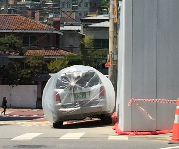 5. «Якщо в Кореї ви припаркували авто в місці, де проводяться пилові будівельні роботи, на вашу машину надінуть такий пакет»