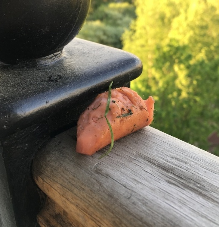8. «На лоджію почали залітати ворони. Залишила вранці на перилах трохи корму, а ввечері виявила на тому ж місці шматочок сосиски. Ось така пташина щедрість і турбота»