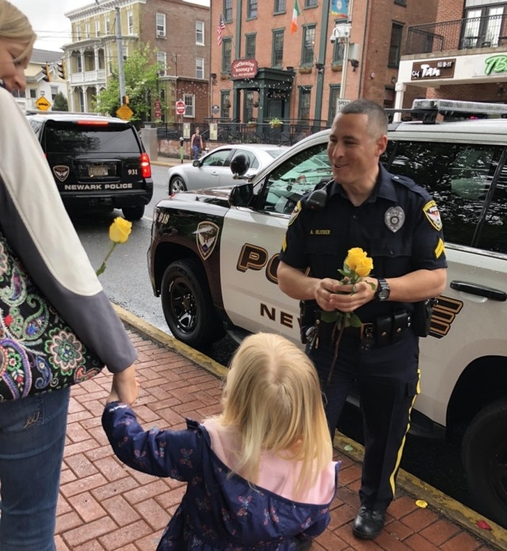 11. Поліцейські з місцевого відділення дарували квіти мамам на вулиці в День матері