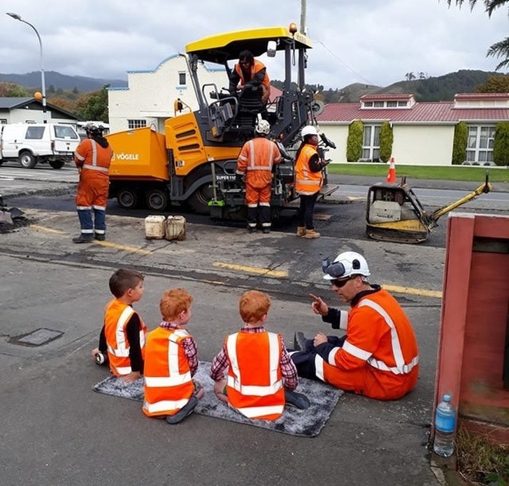 7. Цей робочий витратив кілька хвилин, щоб розповісти дітлахам все про дорожніх роботах