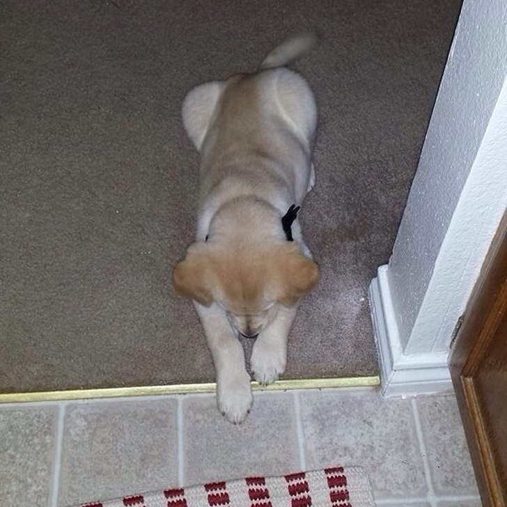 13. «Йому заборонено заходити на кухню, але маленький бунтар все одно однією лапою знаходиться в забороненій зоні»