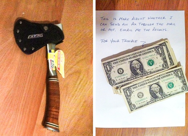 «Це щоб дізнатися, чи можна відправити сокиру поштою чи ні. Розкажи мені про результати. Це за турботу».