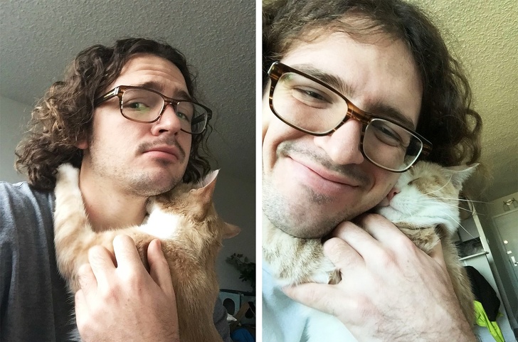 «Я забрав його і його сестру Кексик з притулку, і цей рудий котик відразу почав припадати до моїх щоках і шиї в пошуках молока. Напевно, це пов'язано з тим, що він занадто рано разлучился з мамою. Тому тепер я його „матуся“», — поділився Люк.
