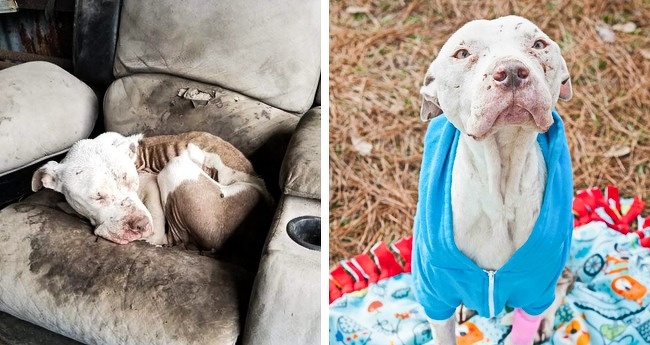 Фокса знайшли на непрацюючій автозаправці в старому кріслі. Врятувати його допомогла інша бездомна собака (Тесса), яка привернула увагу людей і привела їх до Фоксу. Спершу людям здалося, що це просто худий пес, але все було набагато гірше: на тілі собаки було дуже багато кліщів і гнійних ран, зуби були поламані. Після того як Фокс опинився у ветеринарній клініці, йому подарували плюшевого слона, і це була перша річ, яку він покохав. Потрібен час, щоб Фокс зрозумів, що тепер у нього завжди будуть іграшки, ковдру і люблять його люди.