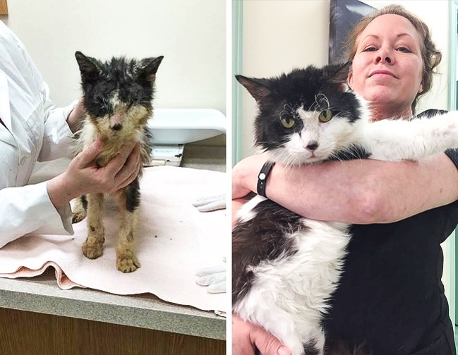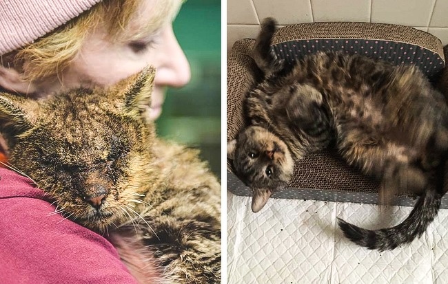 Ще рік тому до цього кота ніхто не хотів підходити: він не міг відкрити очі з-за корости, сидів у клітці і плакав. Допомогла йому Елейн Симанс — засновник фонду Leave No Paws Behind: вона взяла кота на руки, і він одразу поклав їй голову на плече. Зараз Валентино знайшов свою сім'ю. Це дуже сміливий кіт, який не боїться навіть собак, любить сидіти на підвіконні і набрав трохи зайвої ваги.