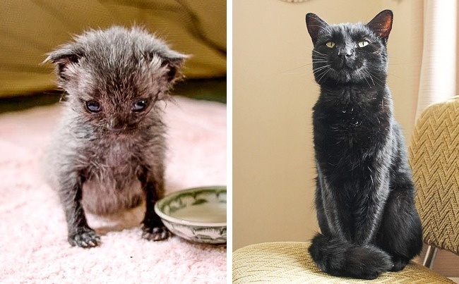 2 роки тому на тротуарі під проливним дощем Кетрін ван Бік помітила крихітний промоклий грудочку, в якому з першого погляду навіть не визнала кошеня. Протягом кількох наступних днів стан кошеня погіршувався, але безперервна турбота Кетрін протягом 6 тижнів допомогла поставити його на лапки. Сірий окрас шерсті був викликаний лихоманкою, яка трапляється з кошенятами, народженими від матері-кішки, яка перебувала в сильному стресі. Зараз цьому коту більше 2 років, він дуже активний і волелюбний, але разом з тим неймовірно ласкавий і вдячний.