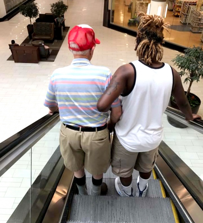 Цей літній чоловік ніяк не міг зважитися стати на ескалатор. Через кілька хвилин до нього підійшов парубок, взяв його під руку і запропонував допомогу. Коли вони спускалися, дідусь тихо сказав, що одного разу застряг на ескалаторі і тепер боїться їх. І якби не цей добрий хлопець, він би не наважився спуститися.