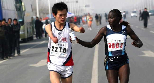 Ця кенійська спринтерша напоїла китайського бігуна, страждав від зневоднення. У підсумку втратила лідерство і прийшла другою