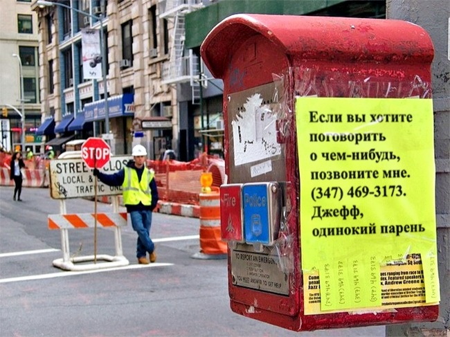 Тієї осені Джефф підробляв расшифровщиком аудіозаписів і ненавидів свою роботу. У вільний час він без мети блукав по місту, доки її погляд не впав на оголошення на стіні. У нього виникла ідея написати свої. Так він і зробив, а потім розклеїв їх на Манхеттені. У них говорилося: «Якщо ви хочете поговорити про що-небудь, зателефонуйте мені. Джефф, самотній хлопець». Він розраховував на десяток дзвінків, але в першу ж добу йому зателефонували 100 осіб.