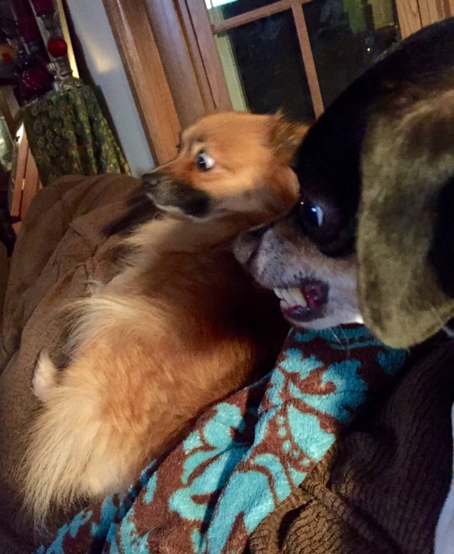 1. «Мій друг заснув і почав хропіти. Цуценя в розгубленості намагається знайти джерело звуку»