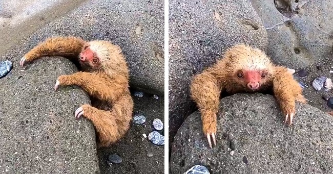 Під час відливу маленький лінивець застряг між двома каменями на одному з пляжів Коста-Ріки і не міг вивільнитися самостійно. Якби не випадок, крихта точно б загинув під час наступного припливу. Але йому посміхнулася удача в особі місцевого жителя Дірка Моргана.