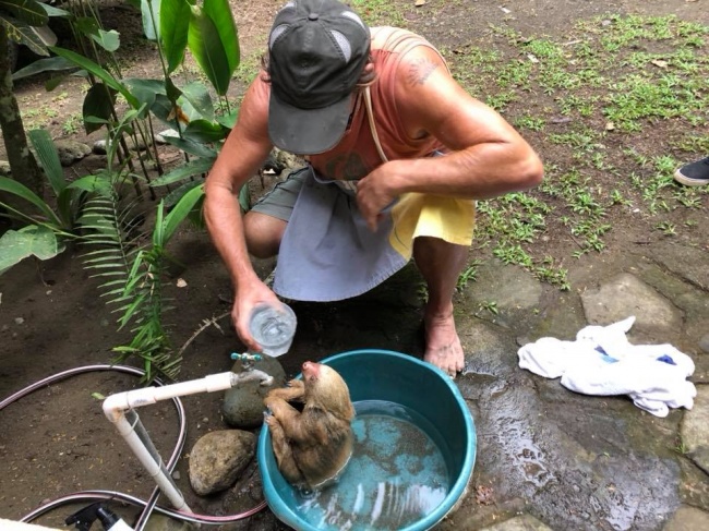 Гість костариканця Дірка Моргана прогулювався неподалік і почув цей крик, але не допоміг дитині. Коли ж він розповів про побачене самому Дірку, той відправився рятувати лінивця, побоюючись, що тварина загине під час припливу.