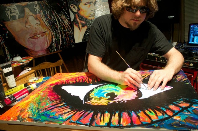 А тепер найцікавіше: вибір фарби і створення відтінків у Джона відбуваються також за допомогою дотику. Олійні фарби відрізняються за структурою: одні більш в'язкі, щільні, інші більш водянисті. Для отримання потрібного кольору художник просто змішує фарби до потрібної консистенції.