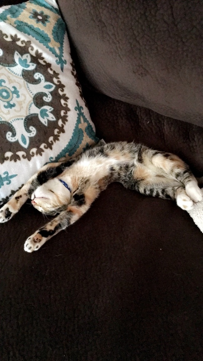 9. «Я почула плач цього кошеня на вулиці. Незважаючи на те що у дитини був мікрочіп, знайти колишніх власників не вдалося. Я залишила її собі і одягла нашийник з дзвіночком, щоб вона більше не губилася»
